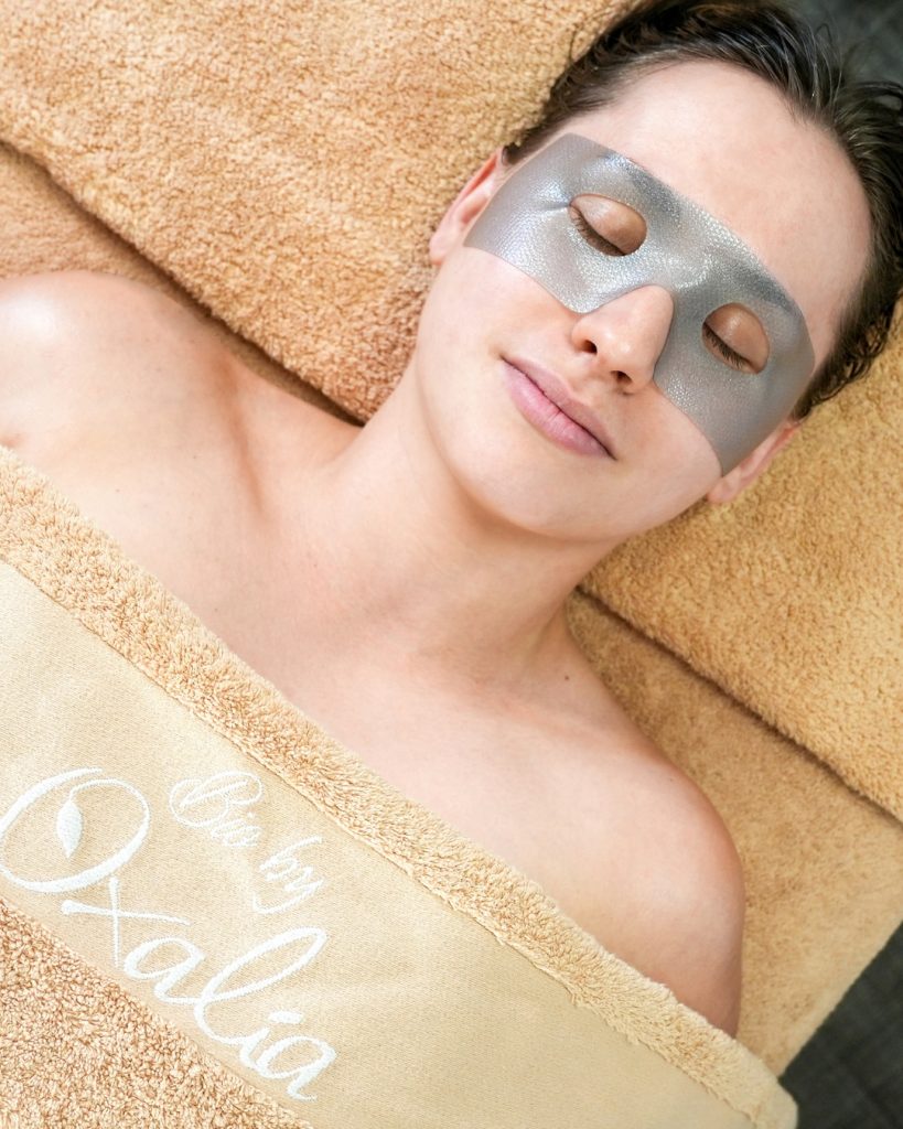 Ensuite, un masque tenseur au collagène associé aux micro-vibrations de la haute fréquence vont raffermir, redensifier la peau et donner de l’éclat.